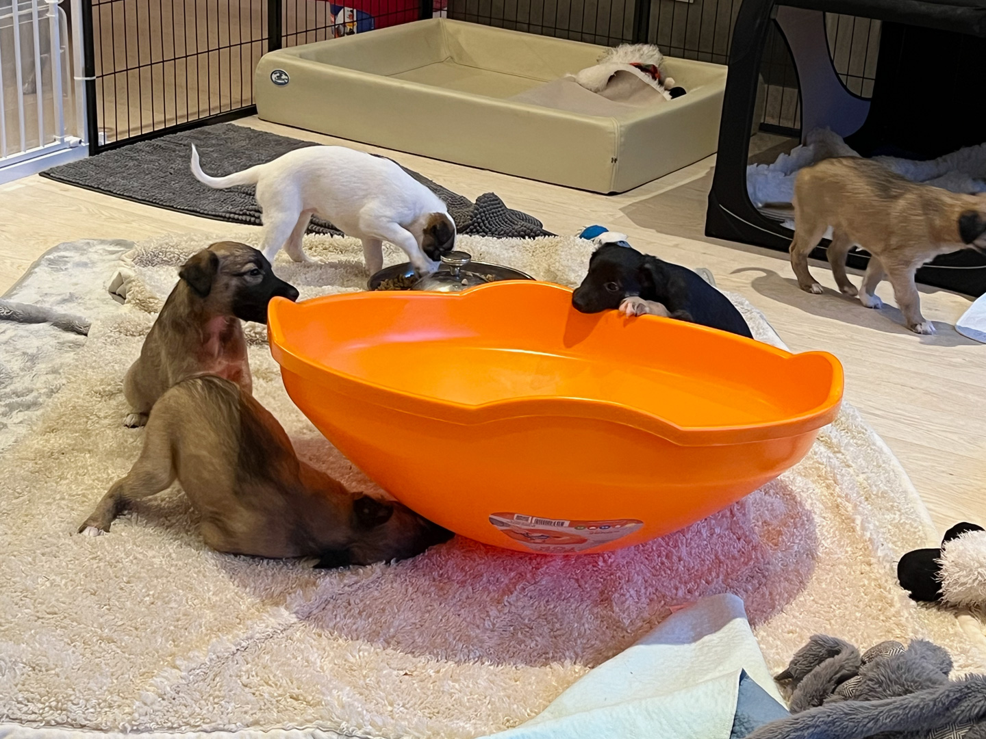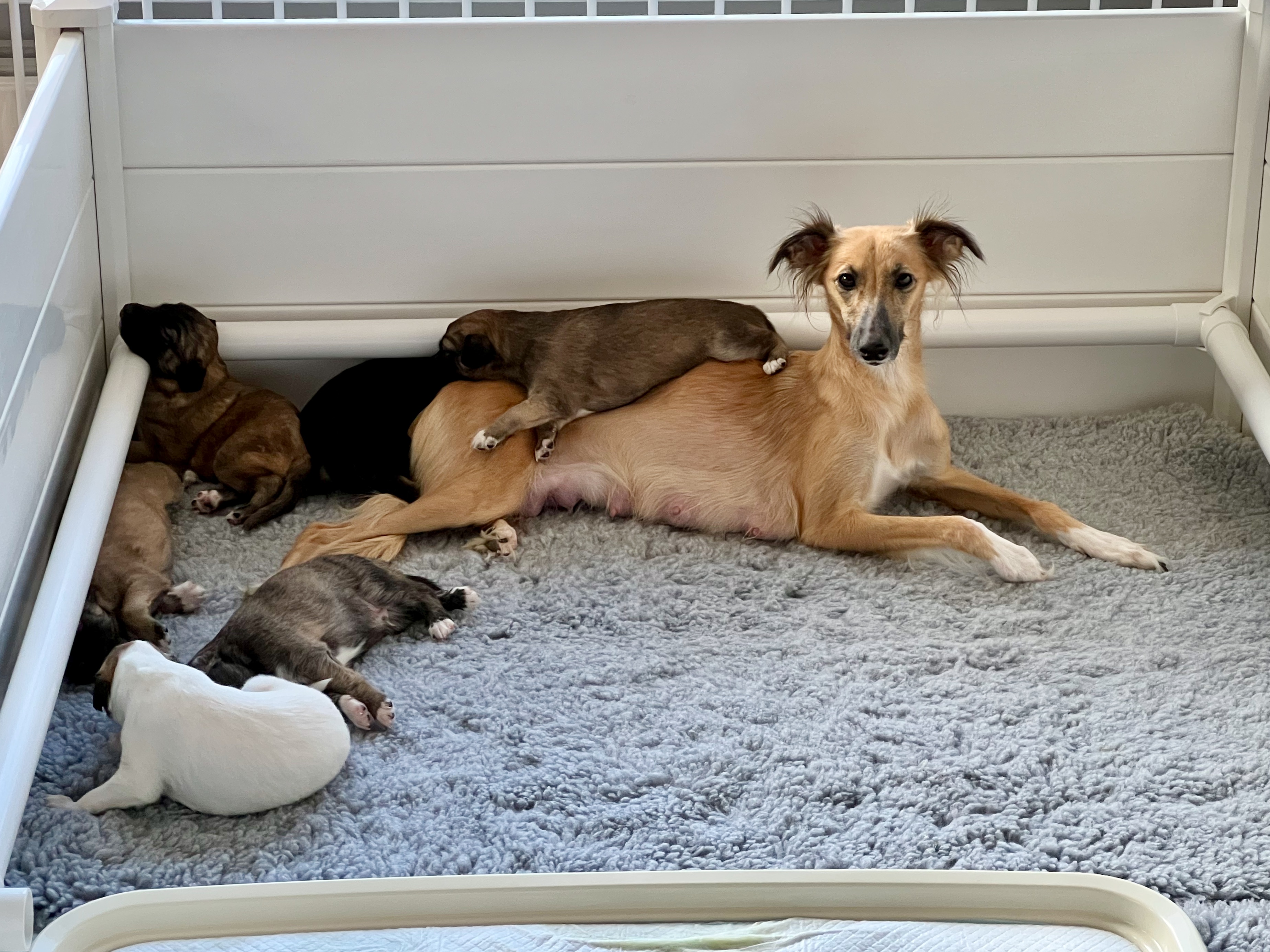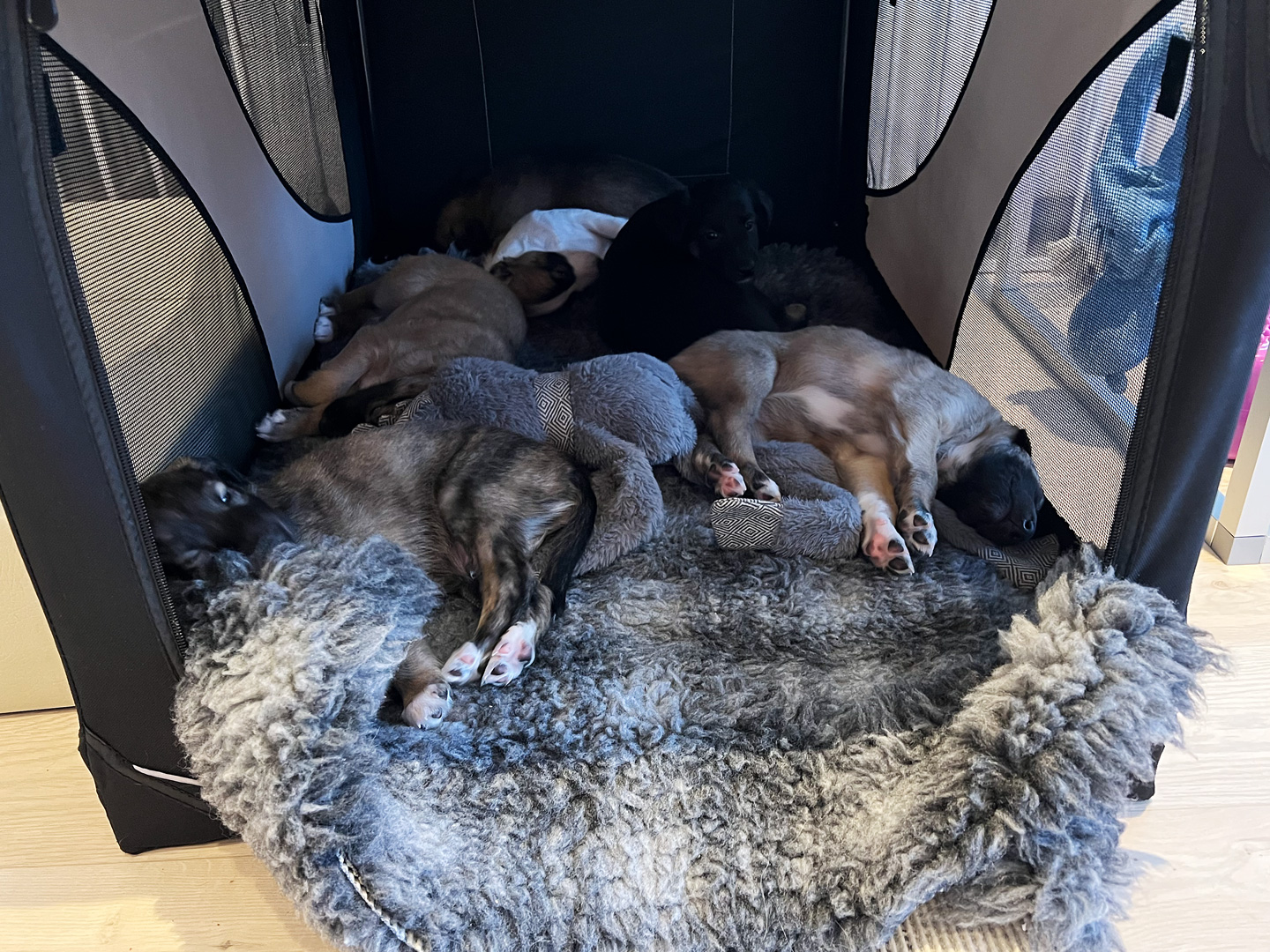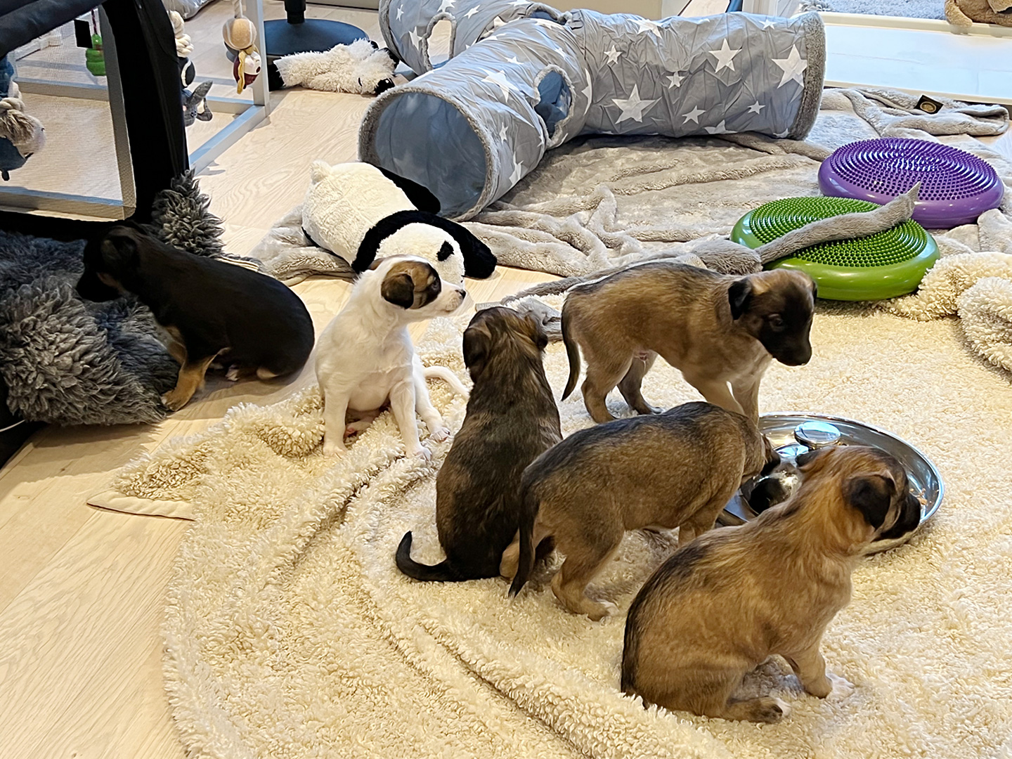 Wir empfangen täglich Besuch um die Welpen mit vielen unterschiedlichen Menschen in Kontakt zu bringen – bei uns ist ordentlich was los.