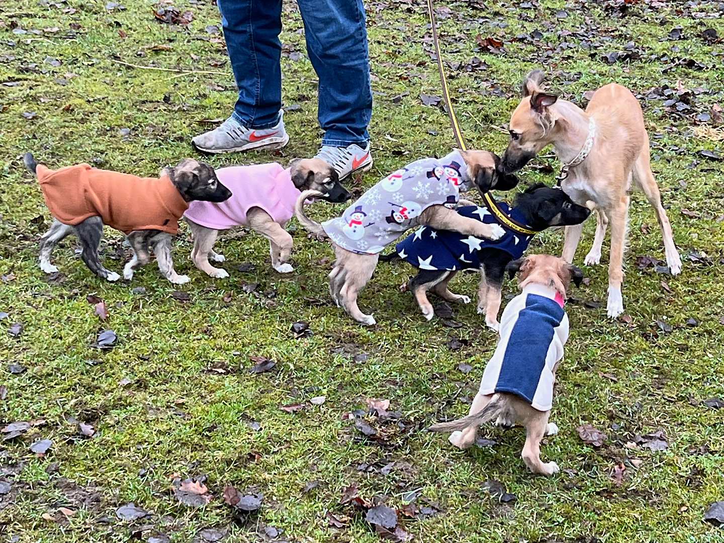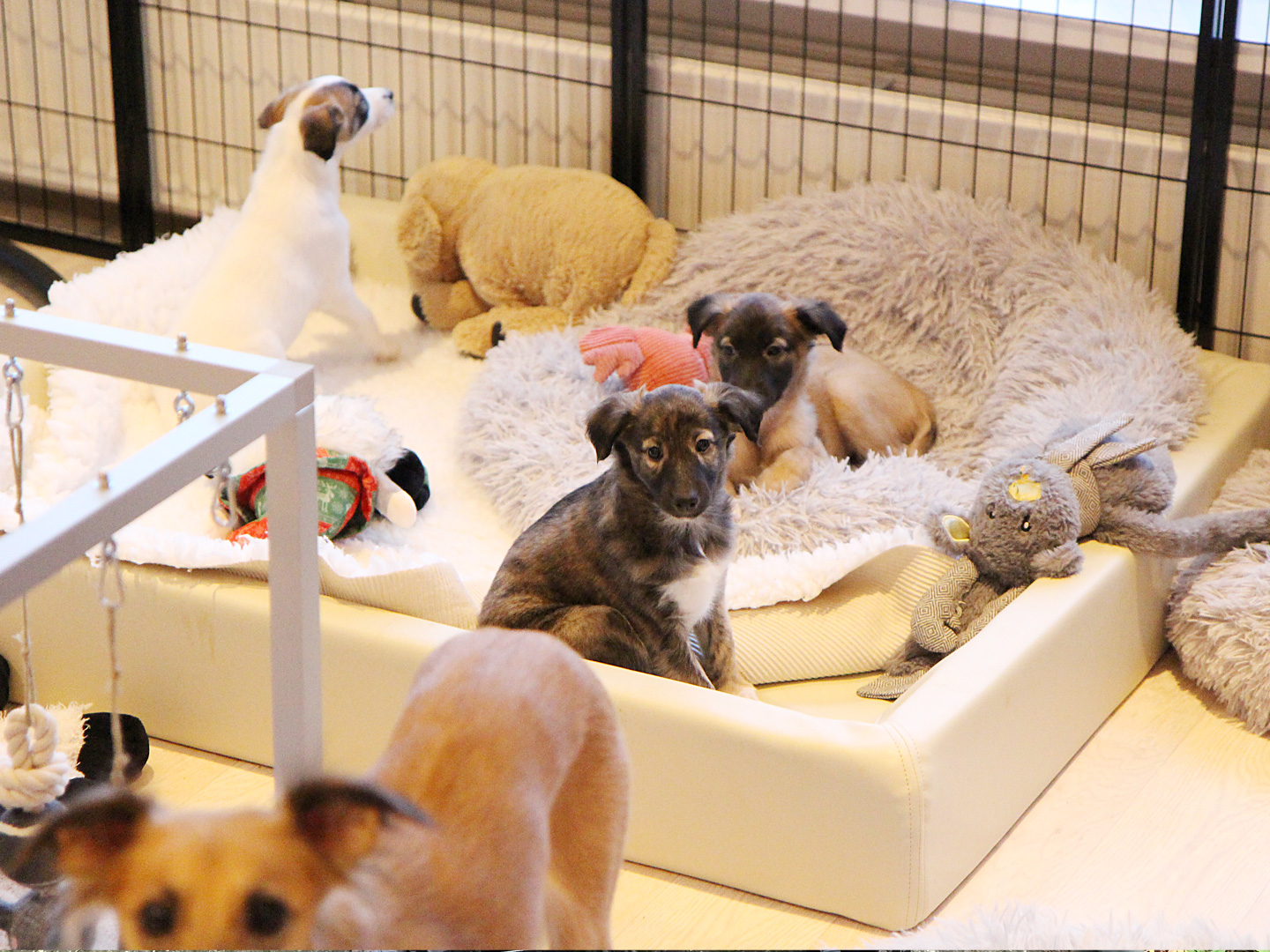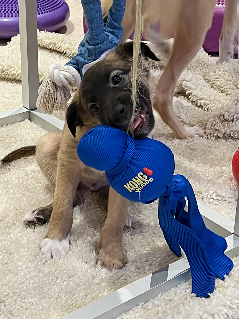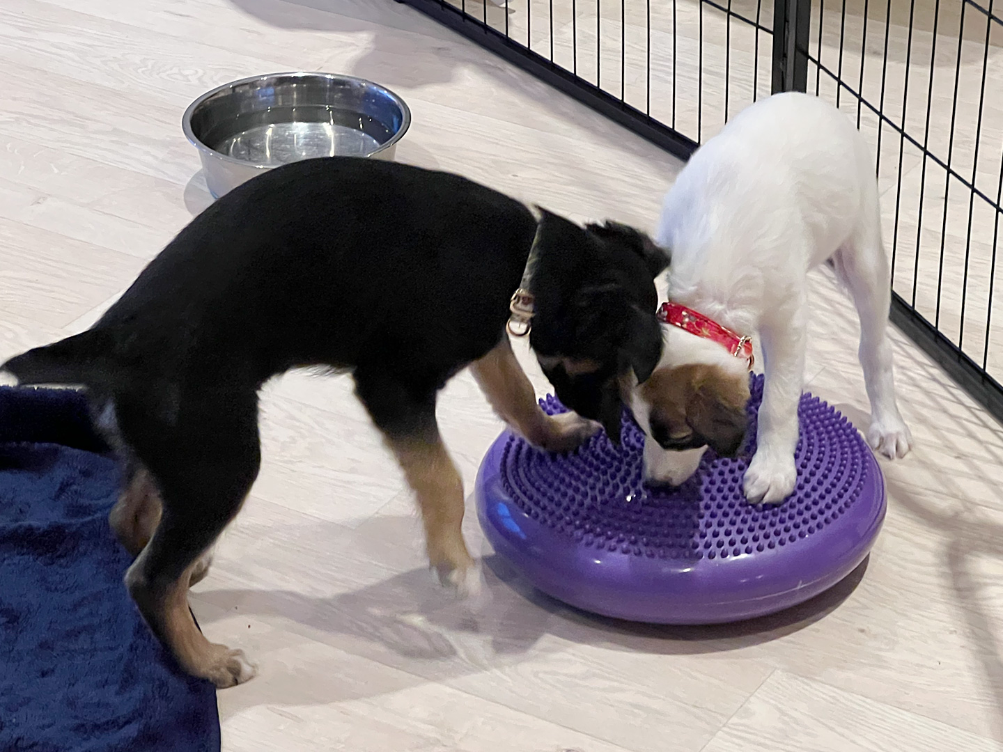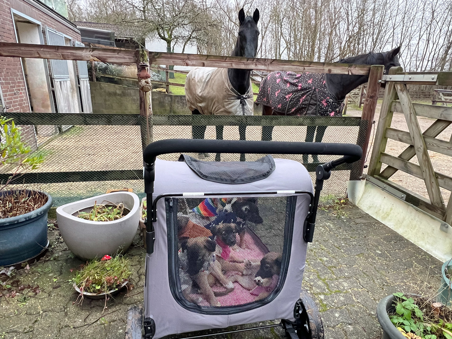 Spätestens ab der siebten Woche hat man das Gefühl eine Horde Hooligans zu beaufsichtigen. Sie zerstören alles, was ihnen zwischen die Zähne kommt und geben im Kampf Geräusche von sich, dass es einem Angst und Bange wird. 😱😉 In dieser ungestümen Wildheit testen sie alles aus: Ihre eigenen Fähigkeiten, ihre Stellung untereinander und überhaupt in der Welt. Eine aufreibende, aber wirklich spannende Zeit. Wir unternehmen mehr Ausflüge und gewöhnen die Welpen an verschiedene Umgebungen und Geräusche. Sozialisierung mit vielen verschiedenen Menschen ist immer noch ein täglicher Bestandteil.