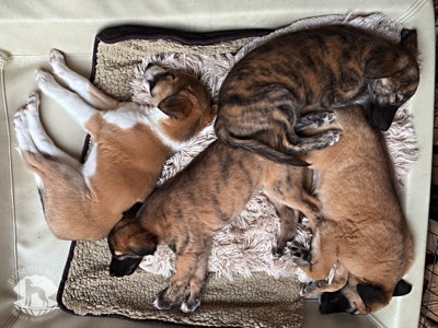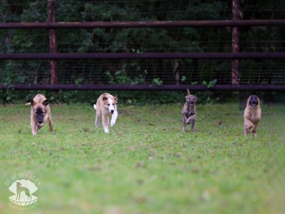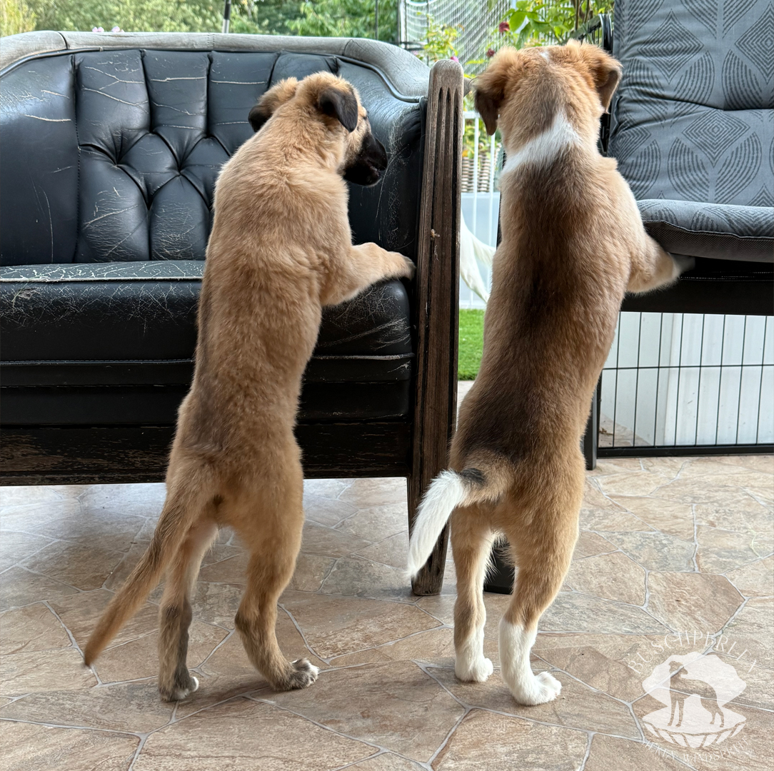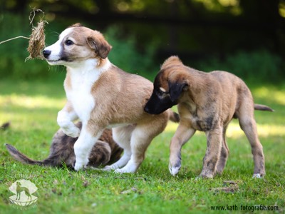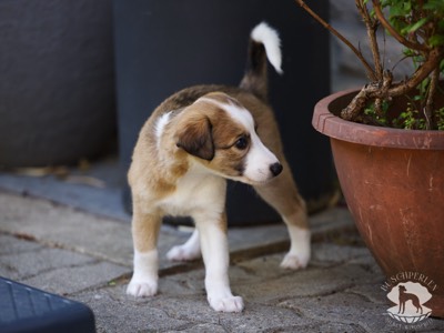 Es ist wirklich faszinierend, wie aus keinen unbeholfenen Hundebabys richtige Hunde werden. Und alles in so kurzer Zeit. Die 7. bis 9. Woche ist eine sehr intensive Zeit. Es entwickelt sich so viel in so kurzer Zeit und eins, zwei, drei ziehen die ersten Welpen auch schon wieder weiter in ihre neuen Familien. Für die Welpen und die neuen Welpeneltern sehr spannend, für uns immer sehr traurig.