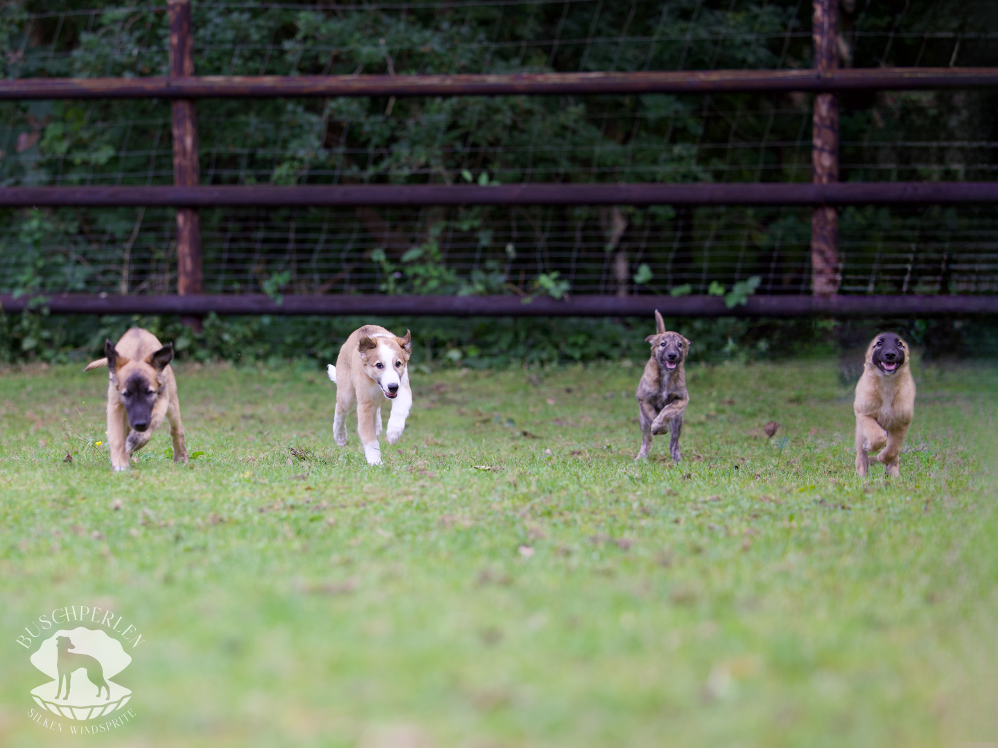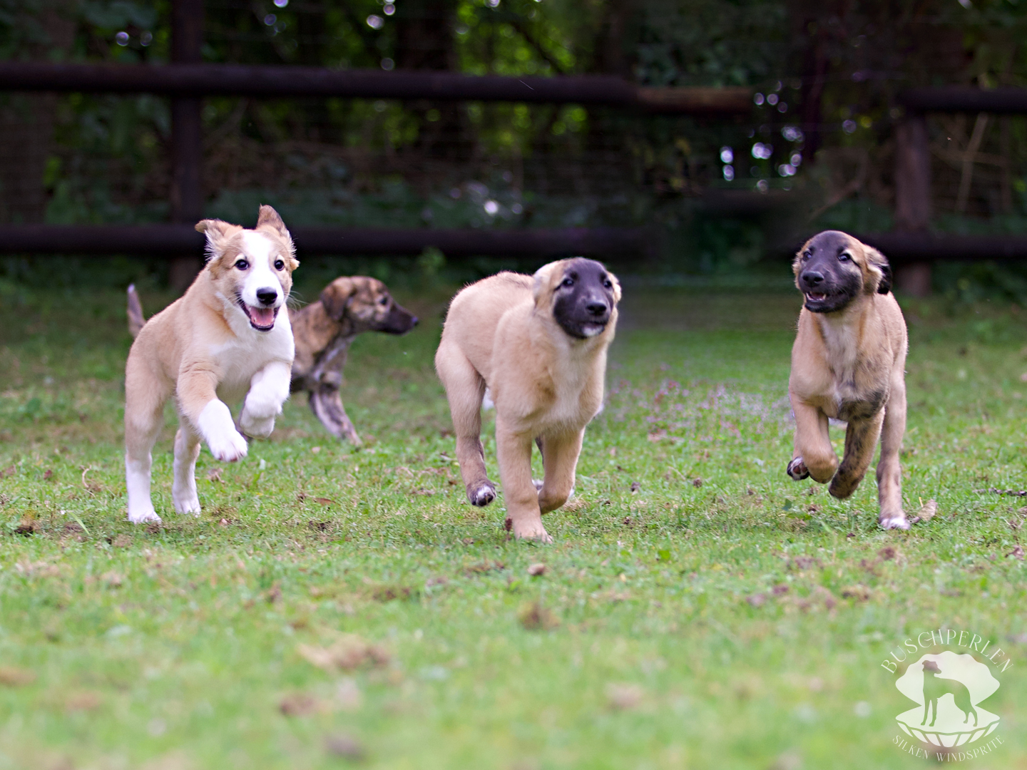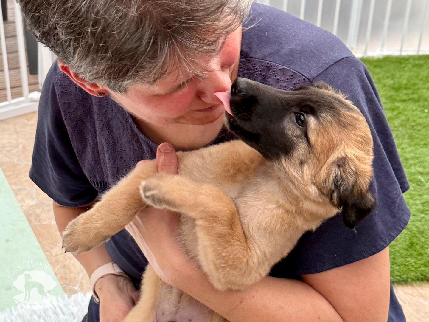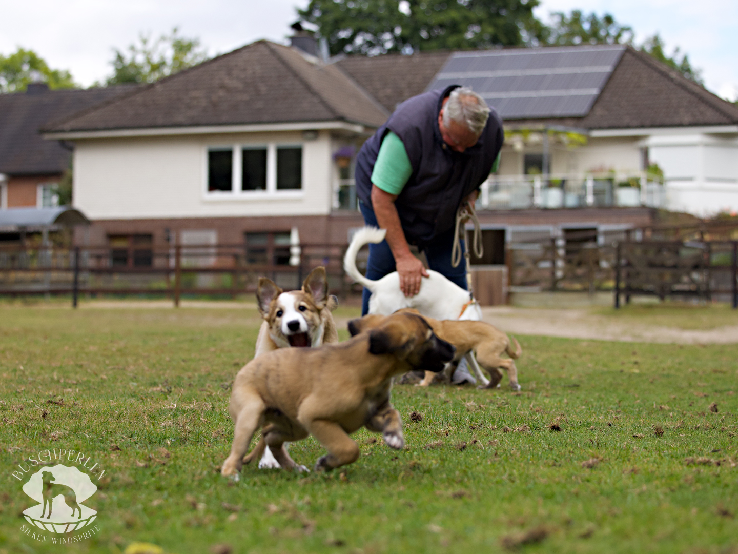 Es ist wirklich faszinierend, wie aus keinen unbeholfenen Hundebabys richtige Hunde werden. Und alles in so kurzer Zeit. Die 7. bis 9. Woche ist eine sehr intensive Zeit. Es entwickelt sich so viel in so kurzer Zeit und eins, zwei, drei ziehen die ersten Welpen auch schon wieder weiter in ihre neuen Familien. Für die Welpen und die neuen Welpeneltern sehr spannend, für uns immer sehr traurig.