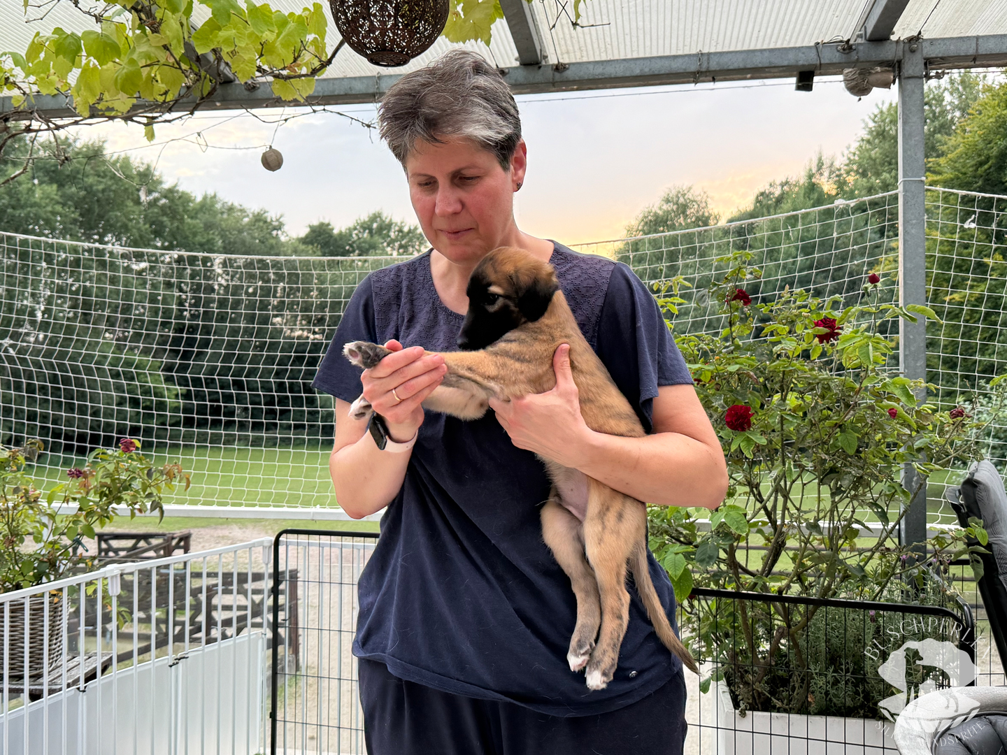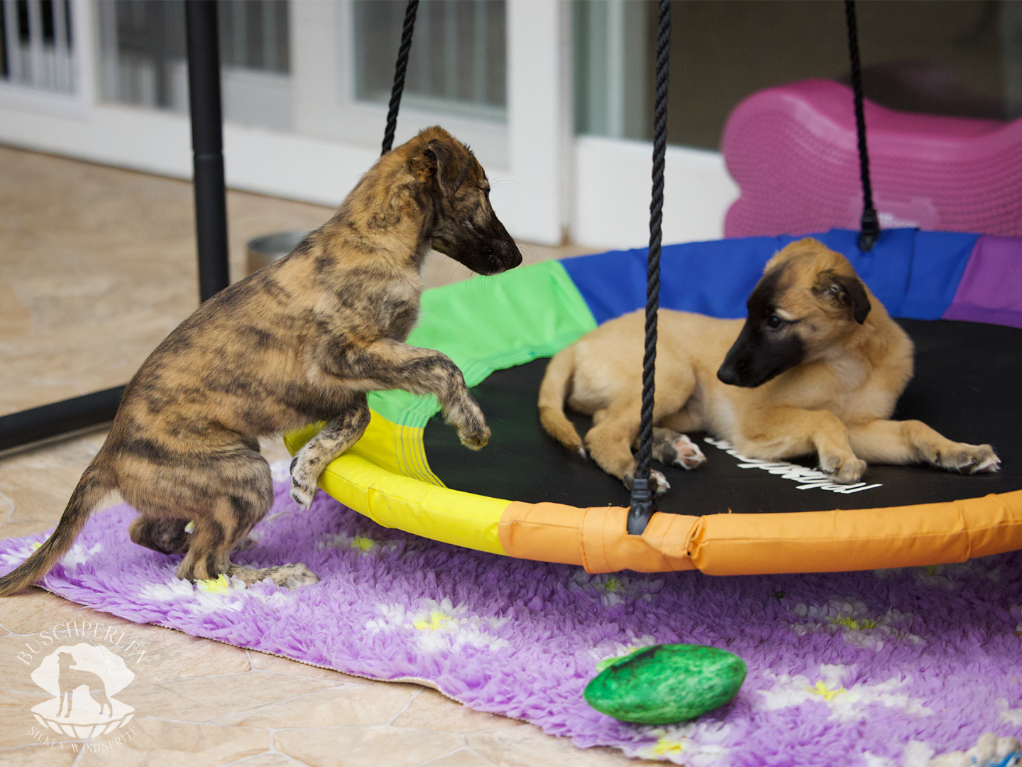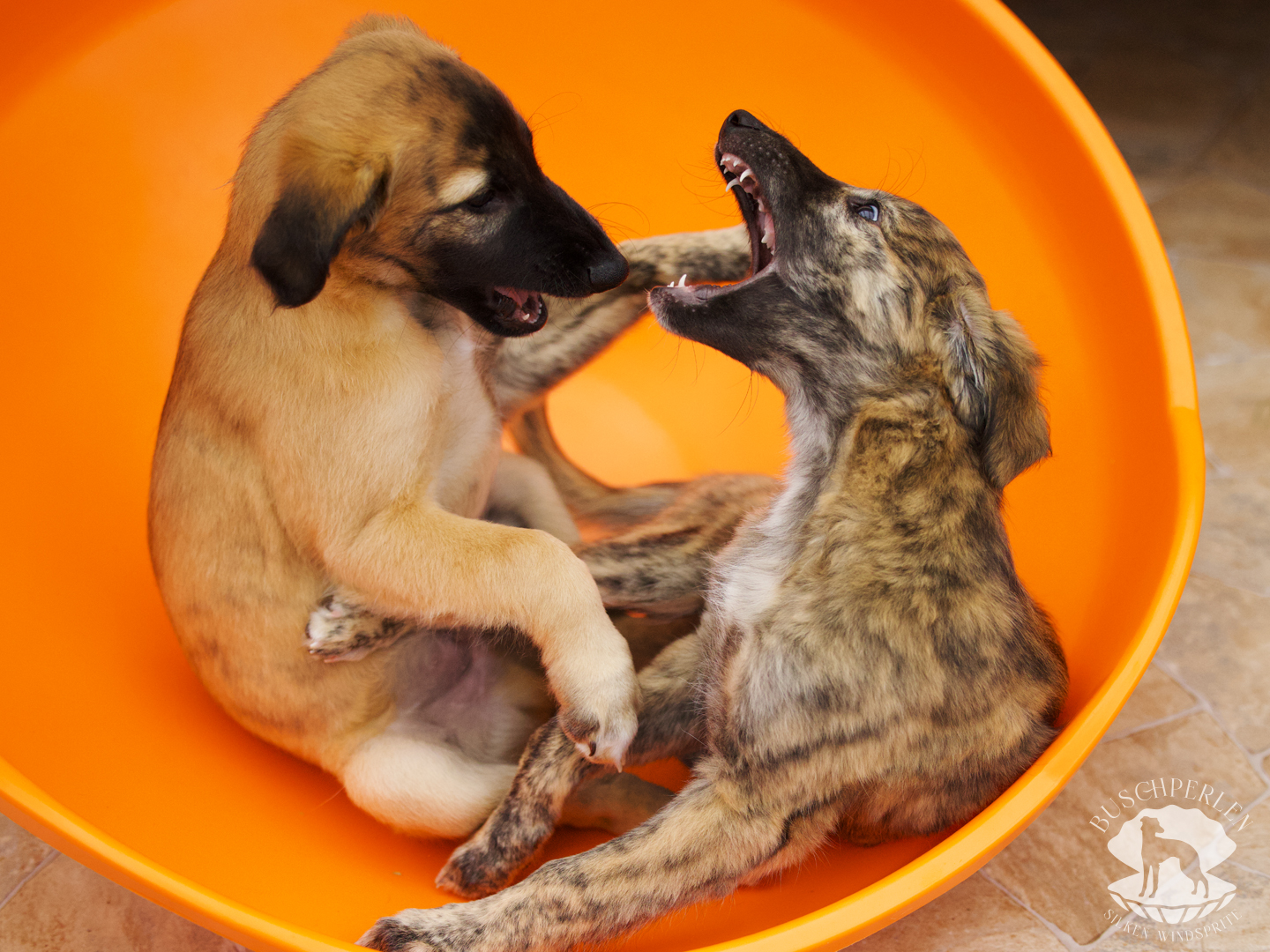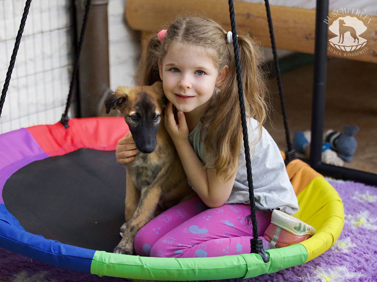 Es ist wirklich faszinierend, wie aus keinen unbeholfenen Hundebabys richtige Hunde werden. Und alles in so kurzer Zeit. Die 7. bis 9. Woche ist eine sehr intensive Zeit. Es entwickelt sich so viel in so kurzer Zeit und eins, zwei, drei ziehen die ersten Welpen auch schon wieder weiter in ihre neuen Familien. Für die Welpen und die neuen Welpeneltern sehr spannend, für uns immer sehr traurig.