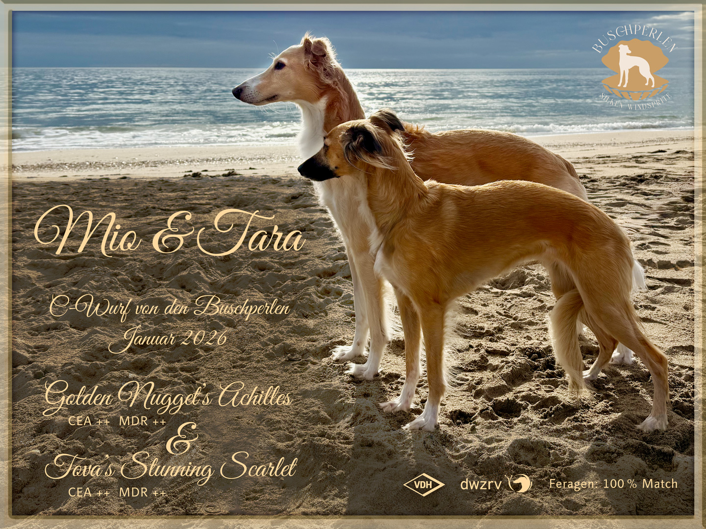Unsere atemberaubende Tara „Tova‘s Stunning Scarlet“ wurde Mitte November von unserem charmanten Mio „Golden Nugget's Achilles“ gedeckt.