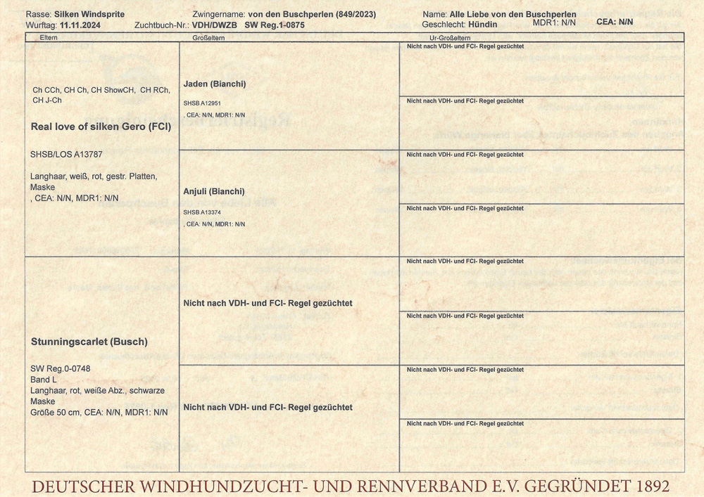 V1, CAC Anwartschaft Deutscher Jugendchampion VDH, CAC Anwartschaft Jugendchampion DWZRV, Jugendlandessieger Weser-Ems