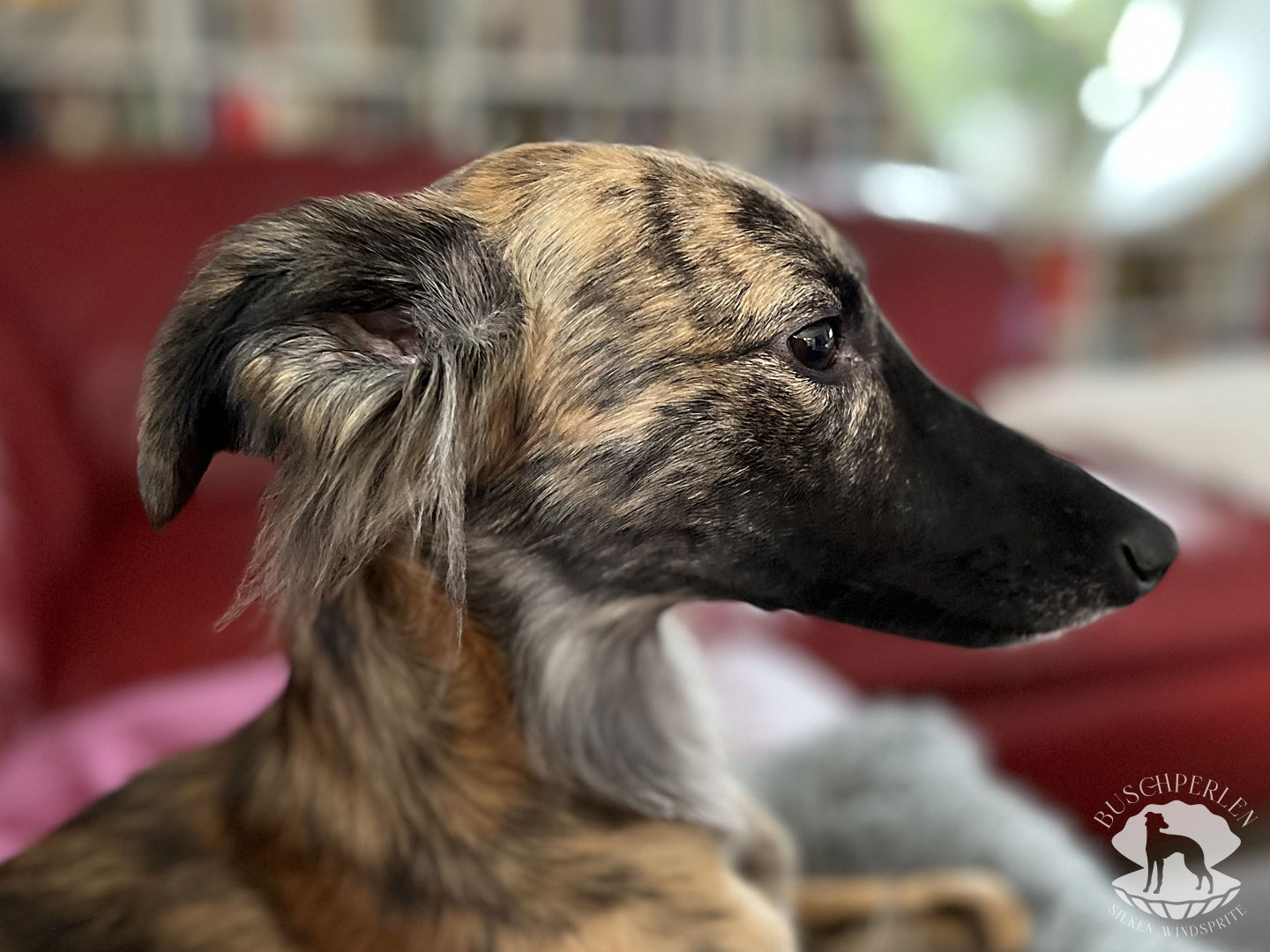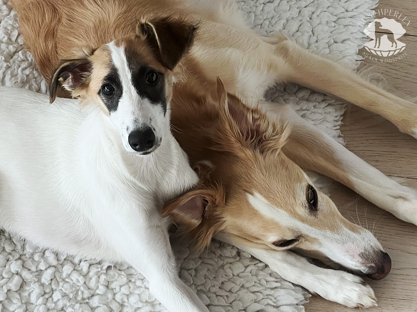 Am 15. Dezember 2019 war es soweit. Mio, unser erster Silken Windsprite zog bei uns ein. Er war von Anfang an ein aufgeweckter und fröhlicher kleiner Kerl – immer gut gelaunt und zu allen Schandtaten bereit. Daran hat sich bis heute nichts geändert. Mio ist Neuem gegenüber vollkommen unerschrocken und für einen Silken Windsprite, die doch generell eher etwas zurückhaltend sind, manchmal schon fast aufdringlich. Dass hinter seiner überschwänglichen Fassade auch ein zarter Geist steckte, konnte man schon früh erkennen. Auch heute lässt er sich von den Damen im Haus herumkommandieren und geht Konflikten möglichst aus dem Weg. Er ist ein wunderbarer Kuschler und genießt jede Form von Zuwendung. Draußen hat er enorm viel Kraft und Power und es macht so viel Freude, ihm beim Rennen zuzusehen. Wenn er seine Runden auf der Wiese oder auf einem Feld absolviert hat, kommt er freudestrahlend und regelrecht lächelnd zurück, als würde er sagen: „Das war wunderbar – das Leben ist schön!“.