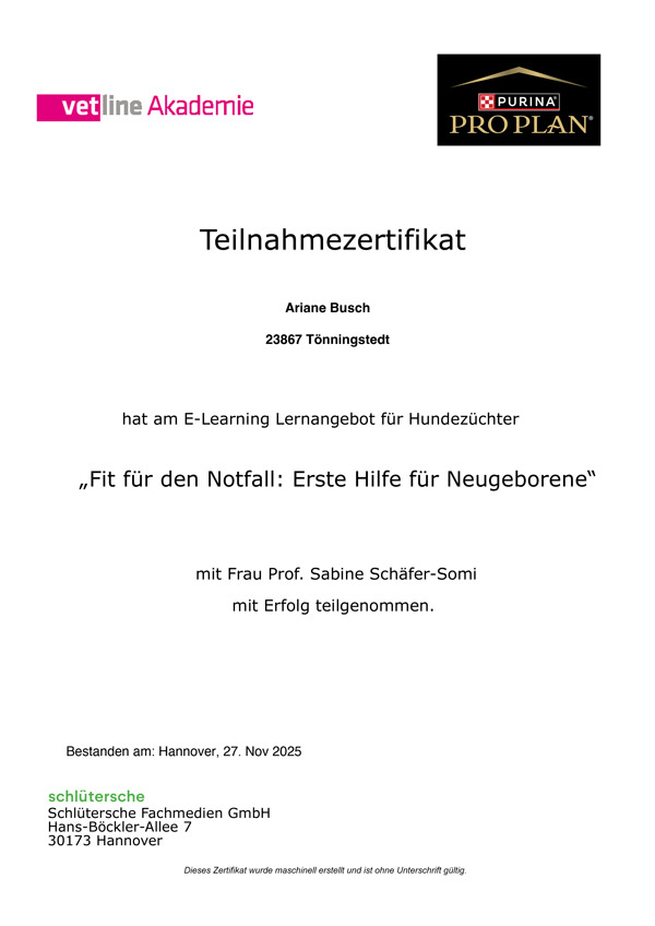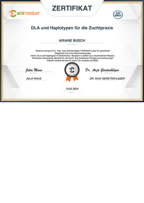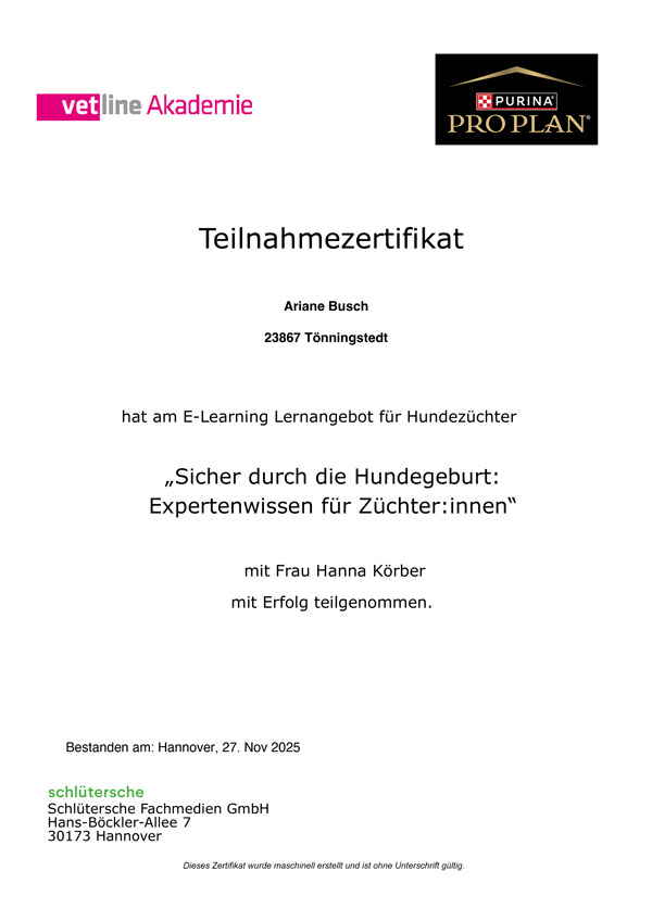 Daraufhin fing ich an, mich intensiver mit den Silken Windsprite zu beschäftigen, und las unter anderem das Buch „Windsprite Chronicles“ von Silke Kuske und Donna DeVoist. Ich war begeistert von den Interviews, die einen Einblick in die Ups und Downs der noch jungen Rassegeschichte gaben. Dadurch kam in mir der Wunsch auf, einen positiven züchterischen Beitrag zur Entwicklung der Silken Windsprites zu leisten. Die genetische Diversität der jungen Rasse zu verbessern, mache ich mir zur Aufgabe. Bei aller Liebenswürdigkeit, Schönheit und Sportlichkeit ist doch die langfristige Gesundheit das wichtigste Gut. So wurden unsere American Girls „Jeannie“ (Tova’s Riesling Surprise In Germany) und anschließend „Tara“ (Tova’s Stunning Scarlet) aus den USA importiert, um den europäischen Genpool der Rasse zu erweitern.