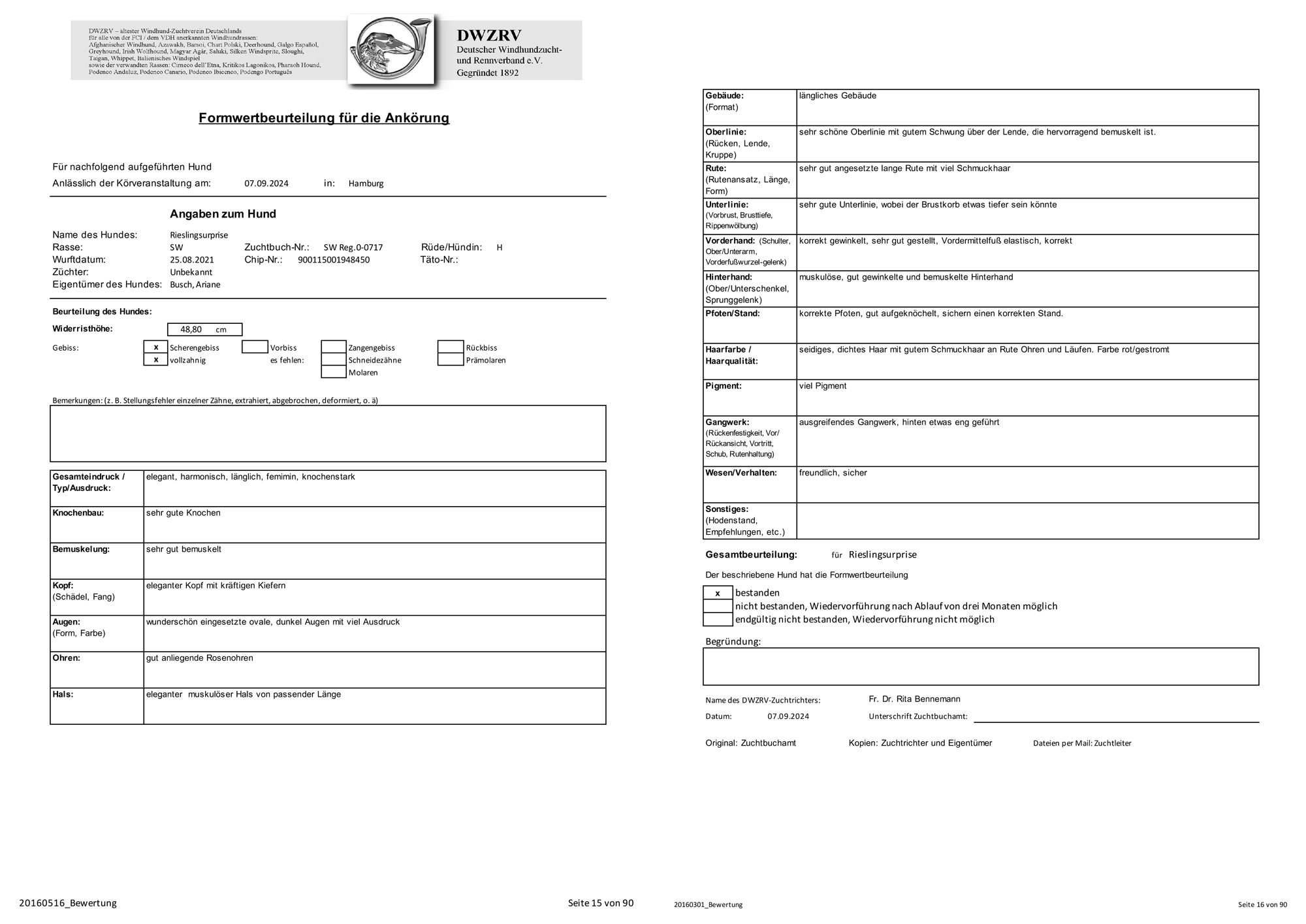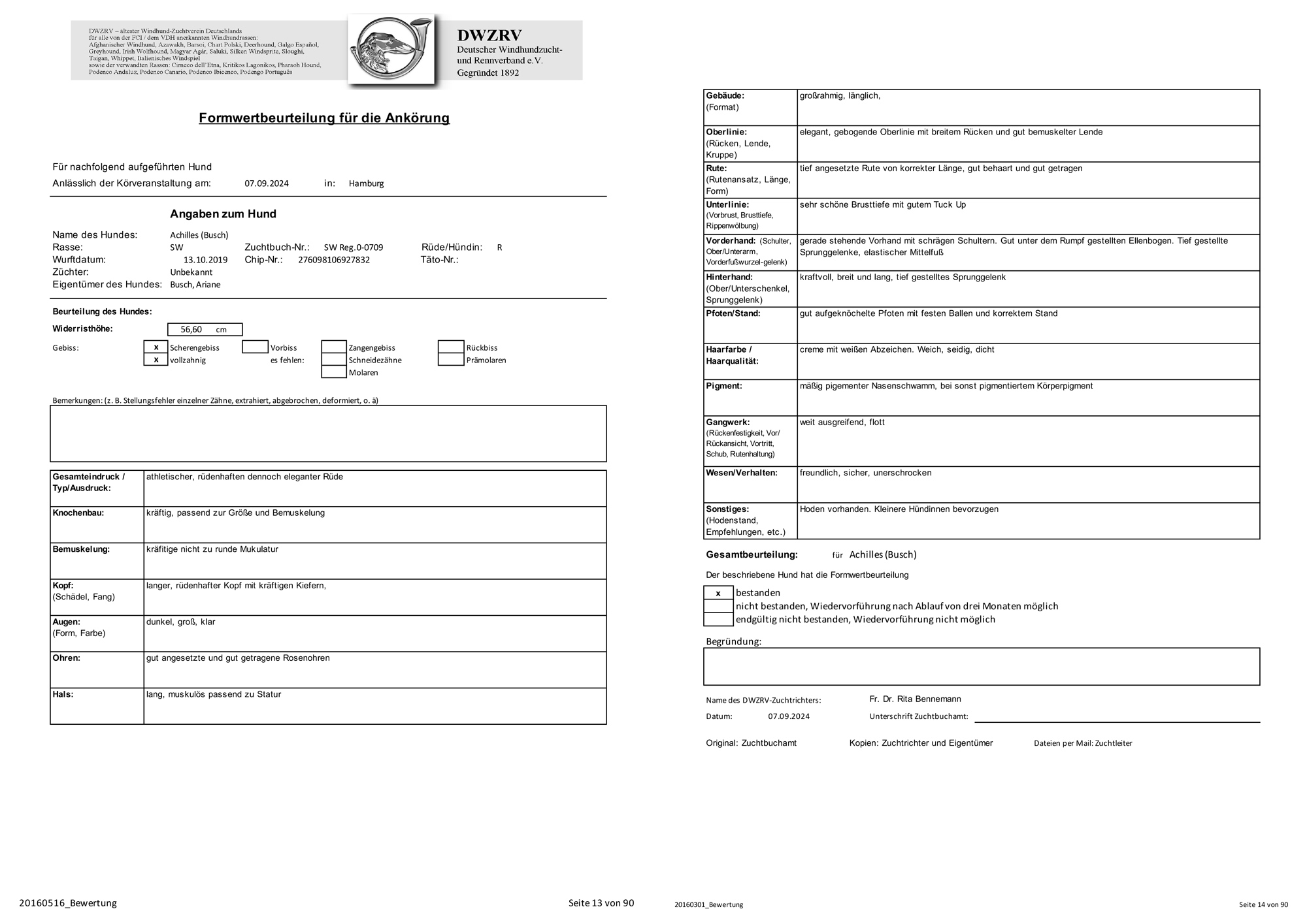 Hier ein Auszug aus „Inhalte von Zuchtbestimmungen kynologischer Organisationen“ (Unser Rassehund, 09/2022):