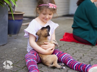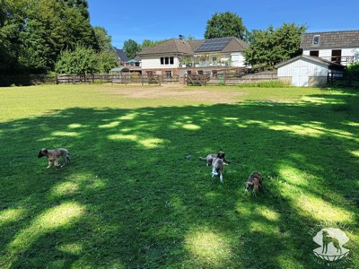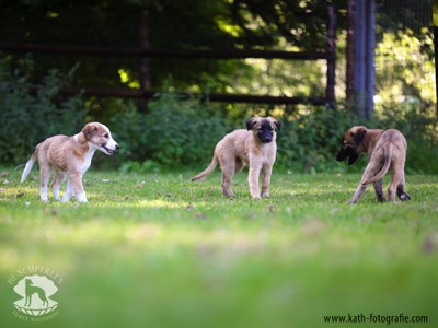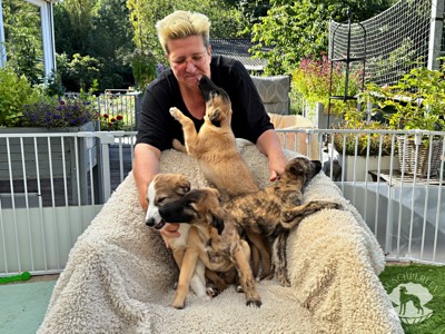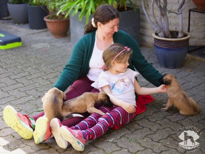 Es ist wirklich faszinierend, wie aus keinen unbeholfenen Hundebabys richtige Hunde werden. Und alles in so kurzer Zeit. Die 7. bis 9. Woche ist eine sehr intensive Zeit. Es entwickelt sich so viel in so kurzer Zeit und eins, zwei, drei ziehen die ersten Welpen auch schon wieder weiter in ihre neuen Familien. Für die Welpen und die neuen Welpeneltern sehr spannend, für uns immer sehr traurig.