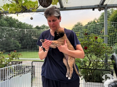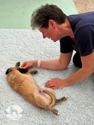 Unsere Physiotherapeutin Larissa Witthöft Animal Sanum kommt wieder zum Welpen-Check-Up und untersucht die Kleinen körperlich. Am Ende der achten Woche kommt auch der Zuchtwart des DWZRV zur Wurfabnahme. Dabei werden nicht nur die Welpen, sondern auch die Zuchtstätte und die Mutterhündin begutachtet. Ein wichtiges Qualitätsmerkmal einer organisierten Zucht.