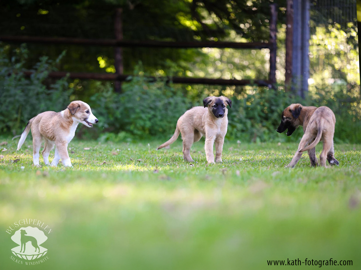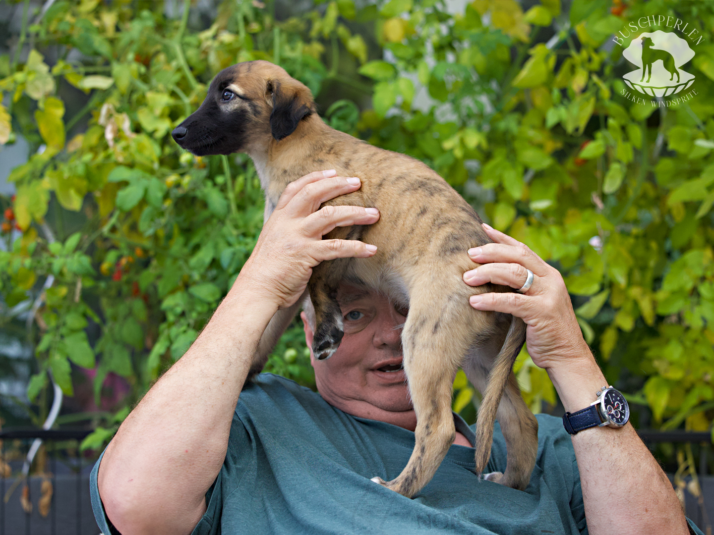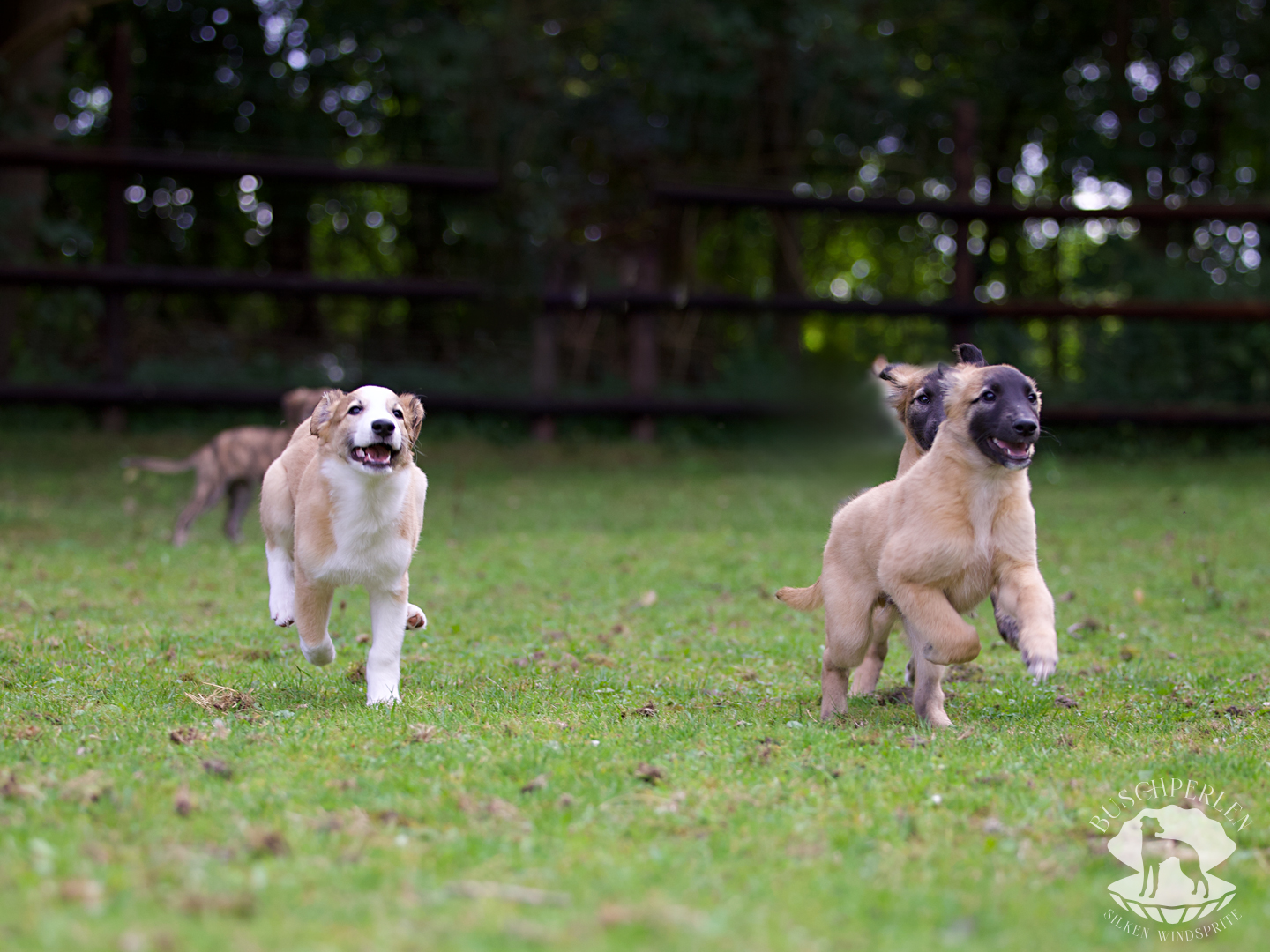 Es ist wirklich faszinierend, wie aus keinen unbeholfenen Hundebabys richtige Hunde werden. Und alles in so kurzer Zeit. Die 7. bis 9. Woche ist eine sehr intensive Zeit. Es entwickelt sich so viel in so kurzer Zeit und eins, zwei, drei ziehen die ersten Welpen auch schon wieder weiter in ihre neuen Familien. Für die Welpen und die neuen Welpeneltern sehr spannend, für uns immer sehr traurig.