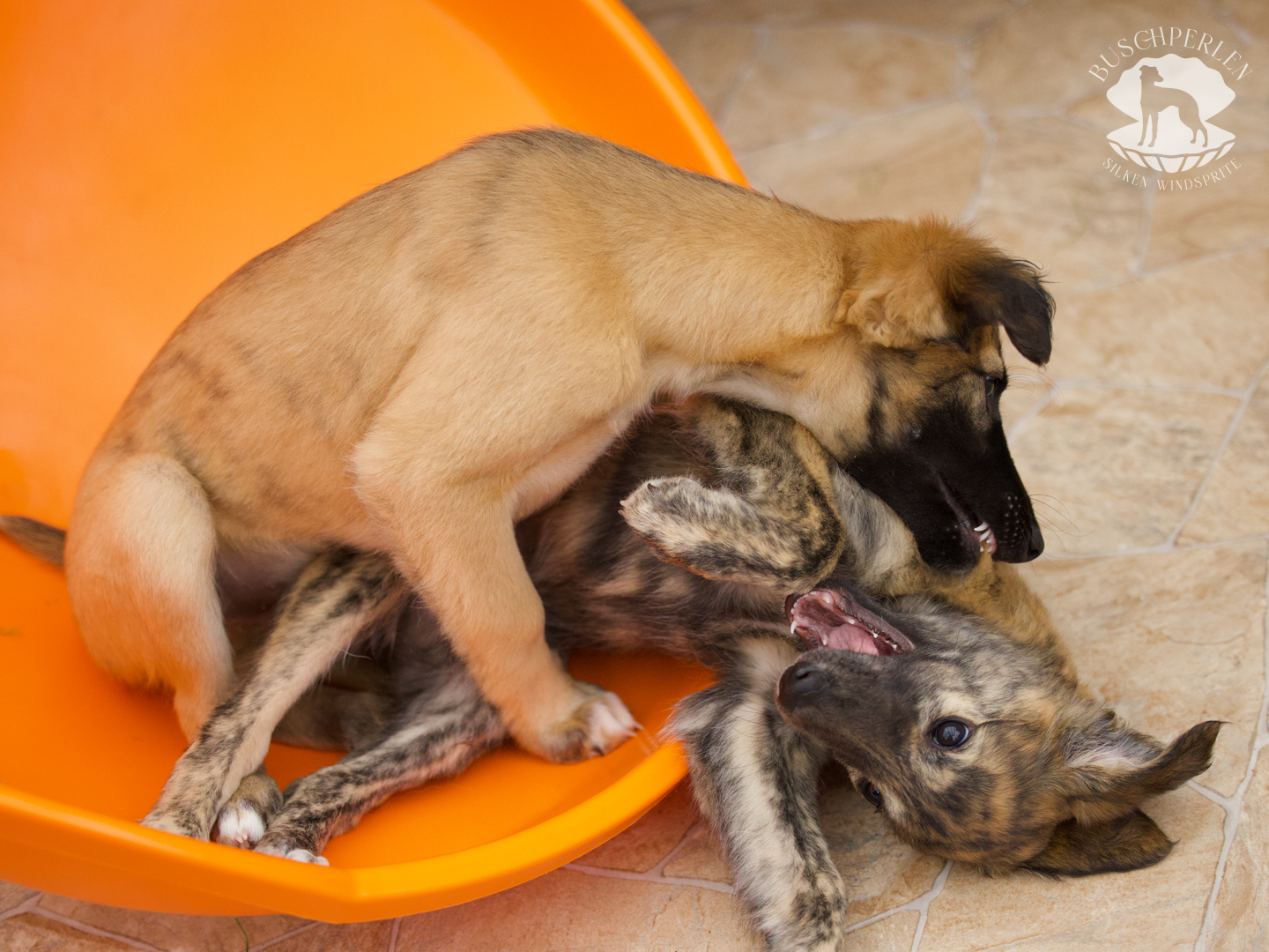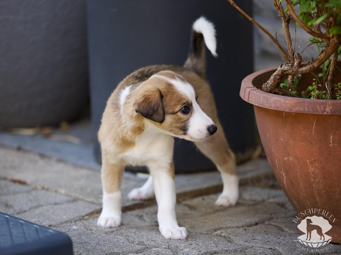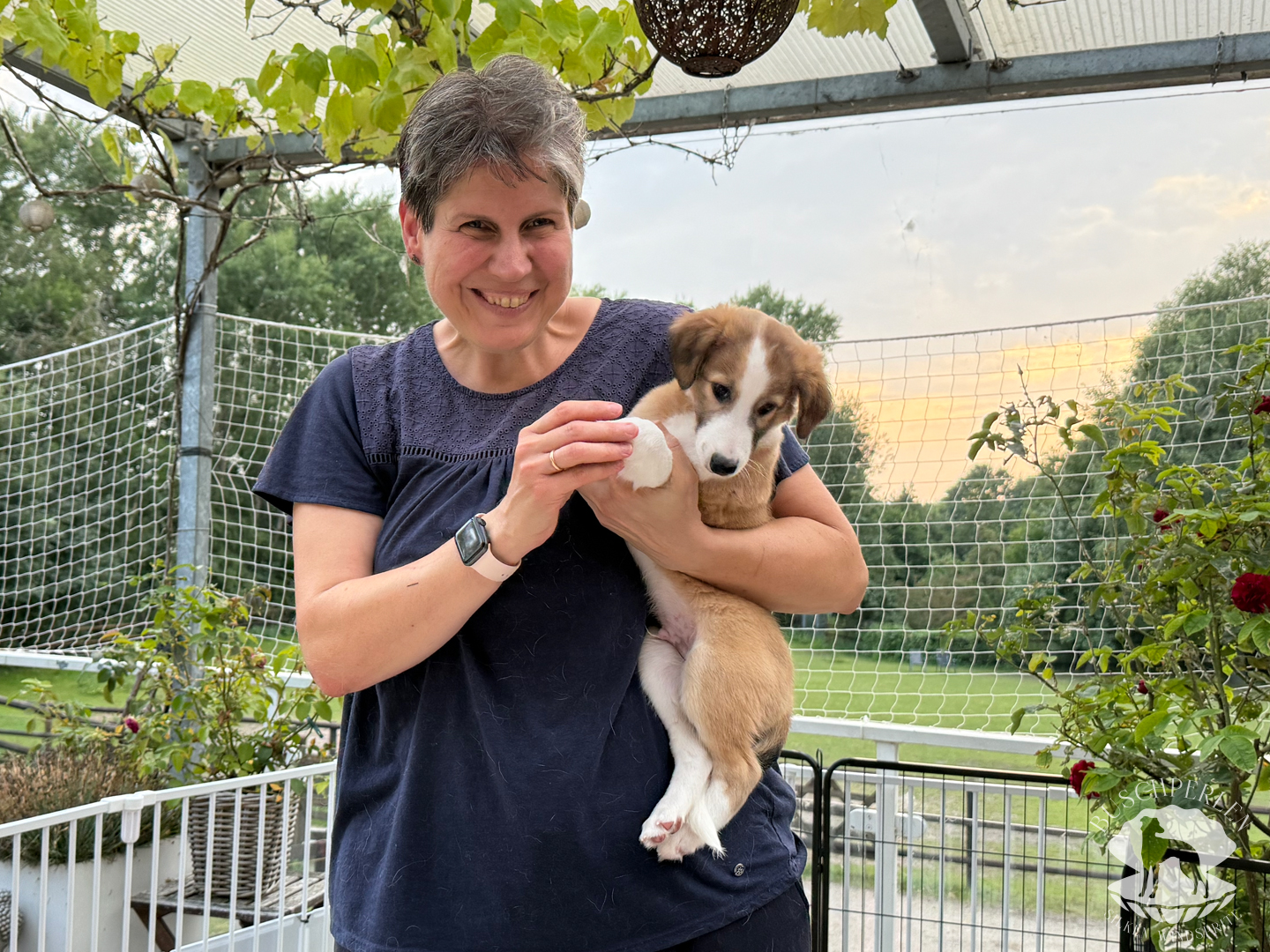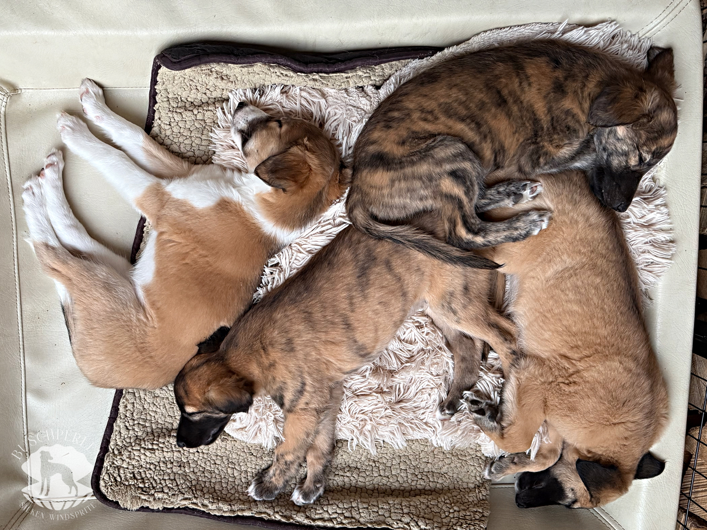 Es ist wirklich faszinierend, wie aus keinen unbeholfenen Hundebabys richtige Hunde werden. Und alles in so kurzer Zeit. Die 7. bis 9. Woche ist eine sehr intensive Zeit. Es entwickelt sich so viel in so kurzer Zeit und eins, zwei, drei ziehen die ersten Welpen auch schon wieder weiter in ihre neuen Familien. Für die Welpen und die neuen Welpeneltern sehr spannend, für uns immer sehr traurig.