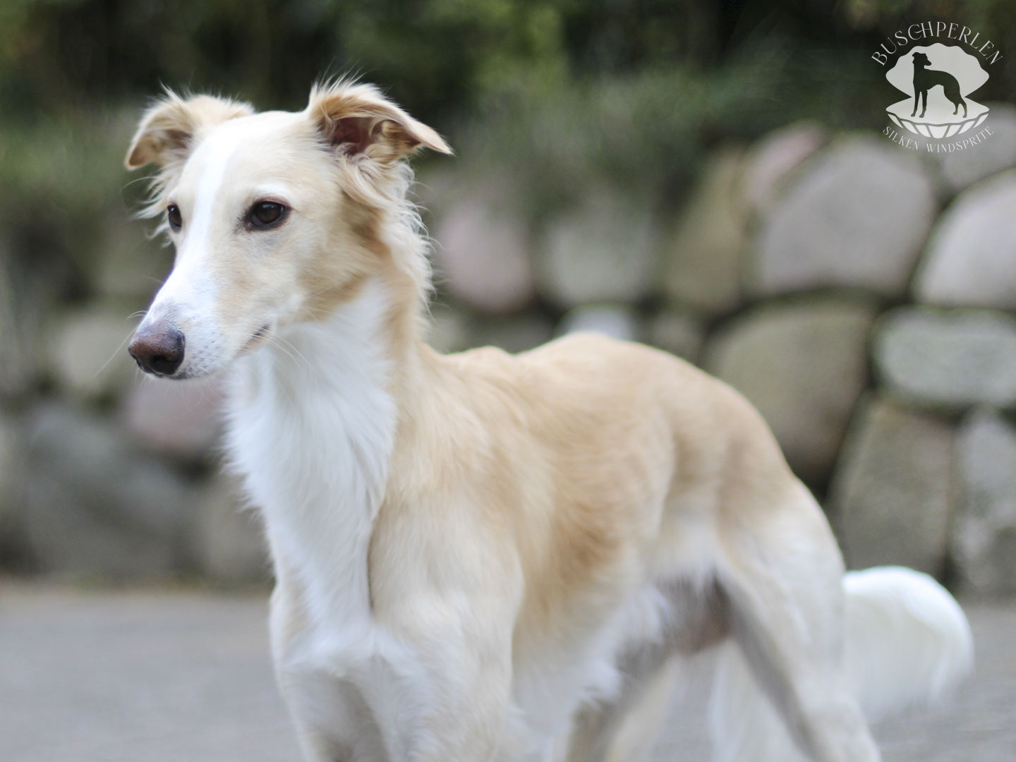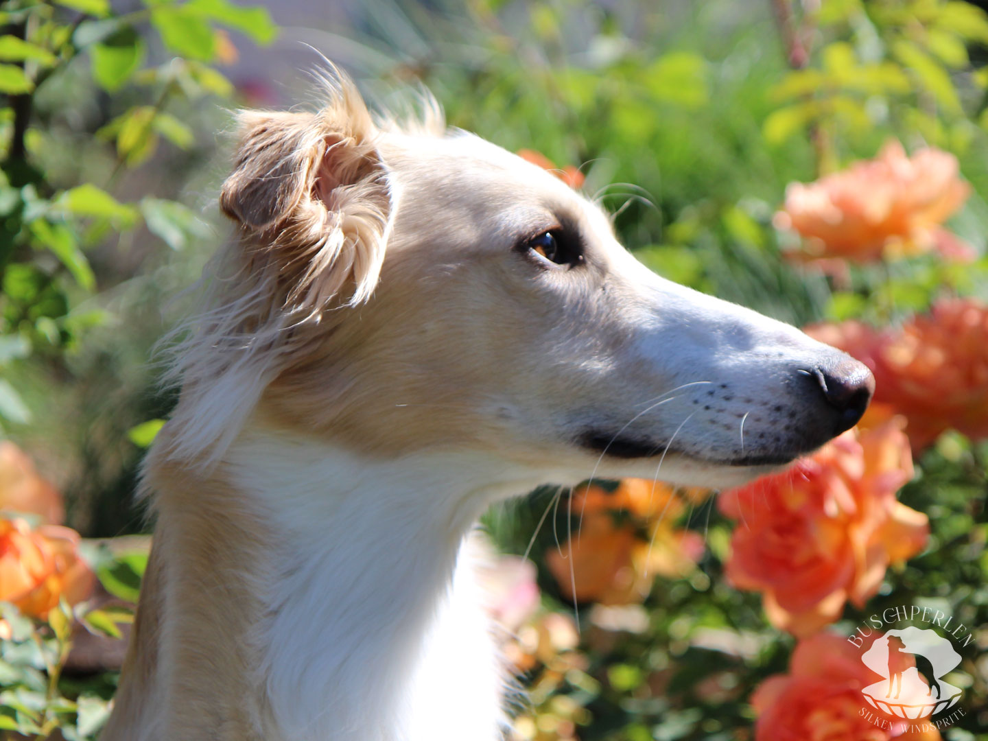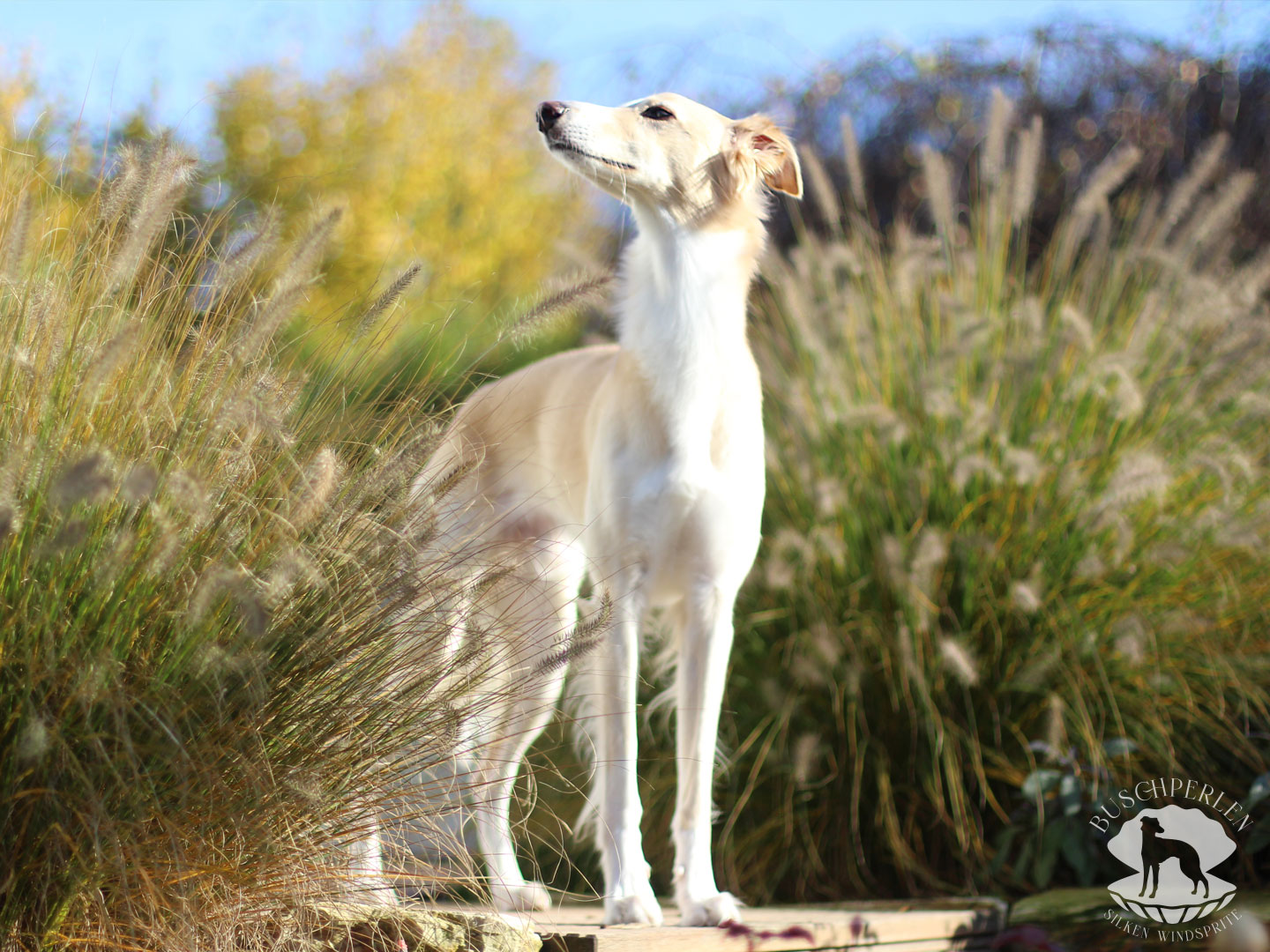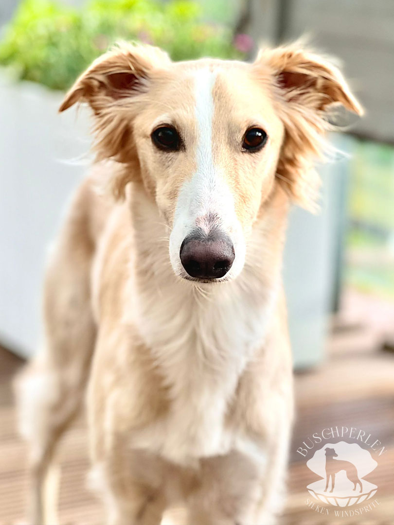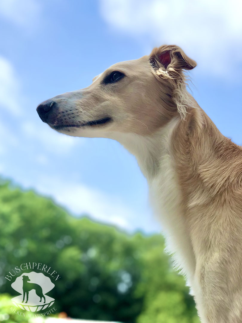 Am 15. Dezember 2019 war es soweit. Mio, unser erster Silken Windsprite zog bei uns ein. Er war von Anfang an ein aufgeweckter und fröhlicher kleiner Kerl – immer gut gelaunt und zu allen Schandtaten bereit. Daran hat sich bis heute nichts geändert. Mio ist Neuem gegenüber vollkommen unerschrocken und für einen Silken Windsprite, die doch generell eher etwas zurückhaltend sind, manchmal schon fast aufdringlich. Dass hinter seiner überschwänglichen Fassade auch ein zarter Geist steckte, konnte man schon früh erkennen. Auch heute lässt er sich von den Damen im Haus herumkommandieren und geht Konflikten möglichst aus dem Weg. Er ist ein wunderbarer Kuschler und genießt jede Form von Zuwendung. Draußen hat er enorm viel Kraft und Power und es macht so viel Freude, ihm beim Rennen zuzusehen. Wenn er seine Runden auf der Wiese oder auf einem Feld absolviert hat, kommt er freudestrahlend und regelrecht lächelnd zurück, als würde er sagen: „Das war wunderbar – das Leben ist schön!“.