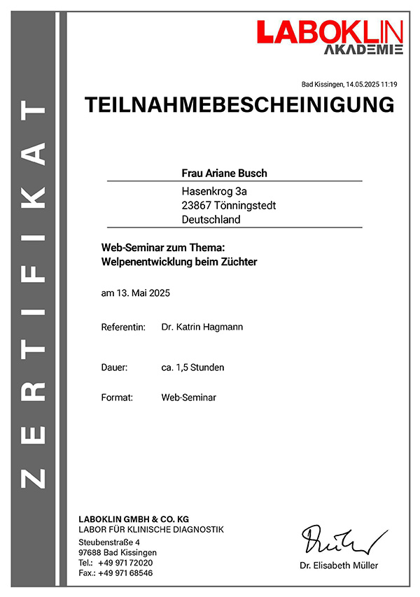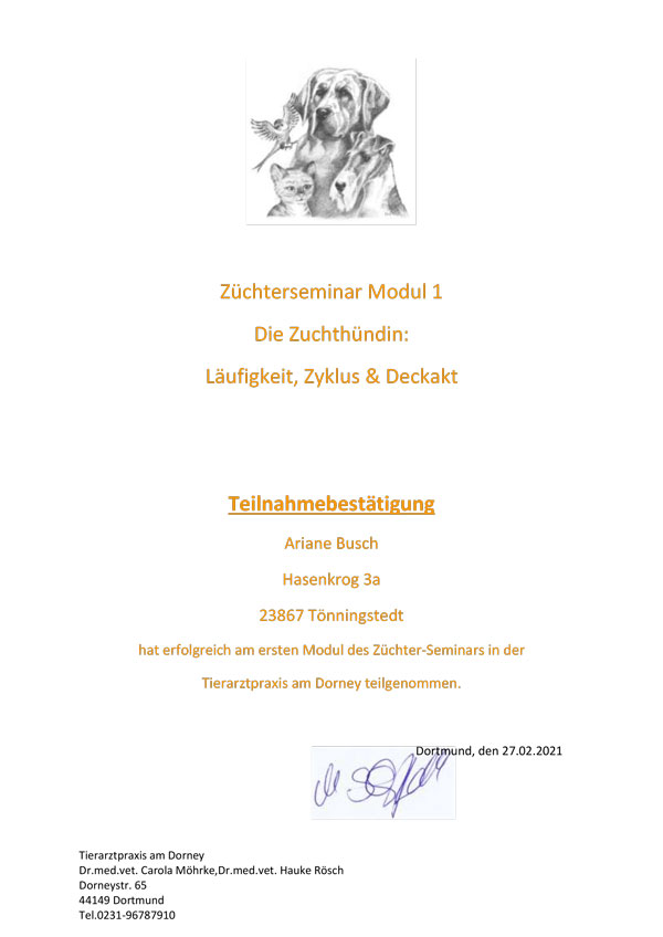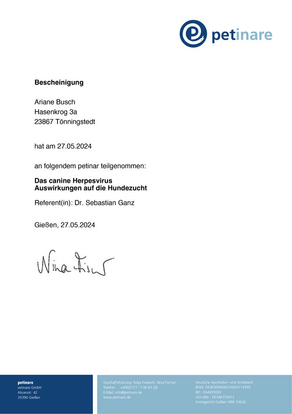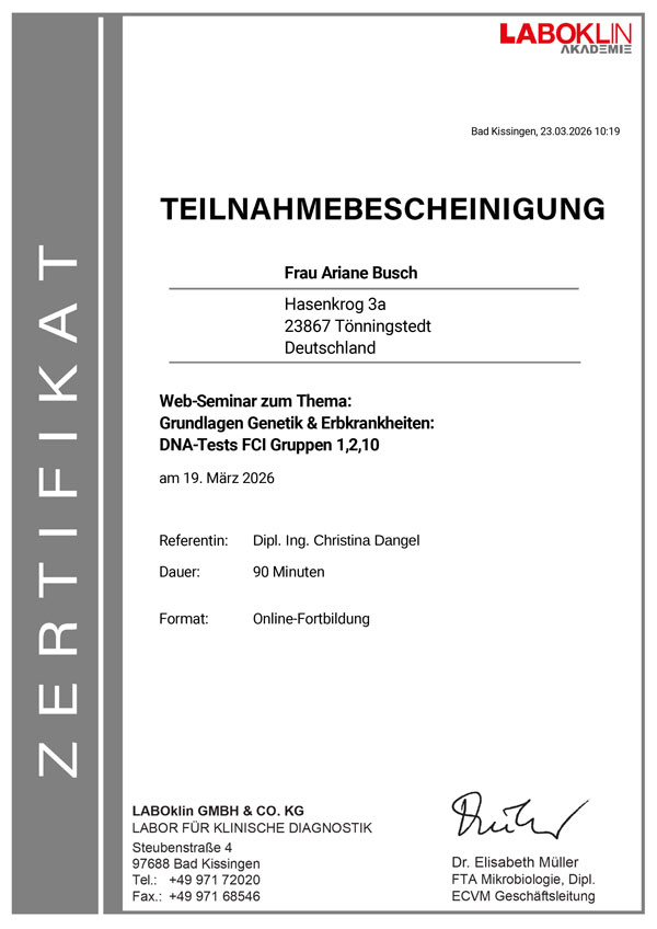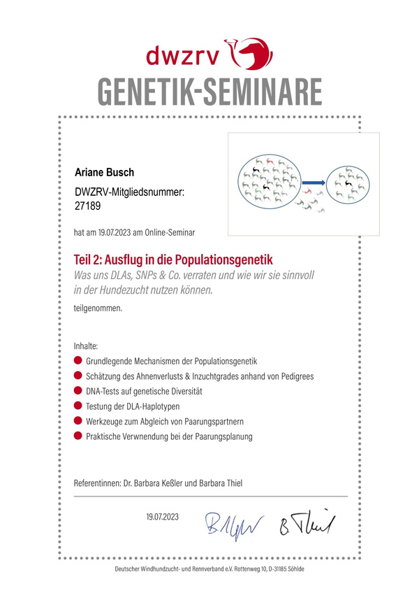 Daraufhin fing ich an, mich intensiver mit den Silken Windsprite zu beschäftigen, und las unter anderem das Buch „Windsprite Chronicles“ von Silke Kuske und Donna DeVoist. Ich war begeistert von den Interviews, die einen Einblick in die Ups und Downs der noch jungen Rassegeschichte gaben. Dadurch kam in mir der Wunsch auf, einen positiven züchterischen Beitrag zur Entwicklung der Silken Windsprites zu leisten. Die genetische Diversität der jungen Rasse zu verbessern, mache ich mir zur Aufgabe. Bei aller Liebenswürdigkeit, Schönheit und Sportlichkeit ist doch die langfristige Gesundheit das wichtigste Gut. So wurden unsere American Girls „Jeannie“ (Tova’s Riesling Surprise In Germany) und anschließend „Tara“ (Tova’s Stunning Scarlet) aus den USA importiert, um den europäischen Genpool der Rasse zu erweitern.
