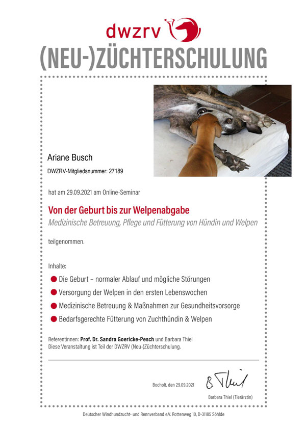 Unser Leben ist und war immer von Tieren begleitet. Hunde und Pferde waren von Anbeginn ein Teil unserer Familie. Als Betreiber eines Reitstalls mit Zucht- und Pensionspferdehaltung und einer Kinderreitschule haben die Pferde uns viele Jahrzehnte auch beruflich begleitet. Mein Mann Peter ist Pferdewirtschaftsmeister, ich bin Pferdewirtin Schwerpunkt Reiten. Der begleitende Hund ist in der Pferdewelt völlig selbstverständlich und auch uns haben viele Hunde begleitet – zum Teil waren es Rassehunde, darunter auch Windhunde, aber auch viele Mischlinge aus dem Tierschutz. Alles hat seine Zeit.