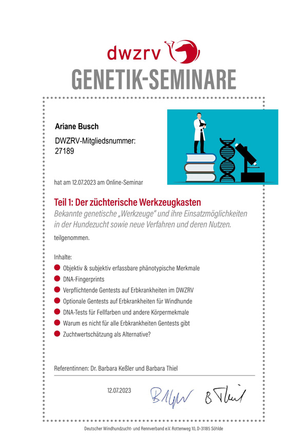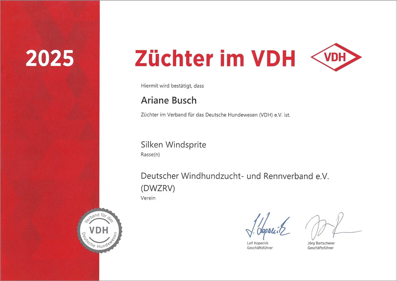 Über diese Frage haben wir lange nachgedacht. Aus ethischen Gründen hätten wir lieber wieder einen Hund aus dem Tierschutz aufgenommen. Bei uns war es der Wunsch nach einem Hund mit besonderen Eigenschaften, der uns zum Silken Windsprite gebracht hat. Er sollte die charakterlichen Eigenschaften eines Windhundes besitzen, eine gewisse Erziehbarkeit sollte vorhanden sein. Er sollte keinerlei genetisch veranlagte Aggression mitbringen, er sollte möglichst ohne Leine geführt werden können, nicht ganz kurzhaarig sein und vor allem nicht zu groß werden, sodass man auch zwei oder drei davon halten könnte (unser letzter Hund vor den Silken war ein Deerhound, der den ganzen Kofferraum des Autos ausfüllte).