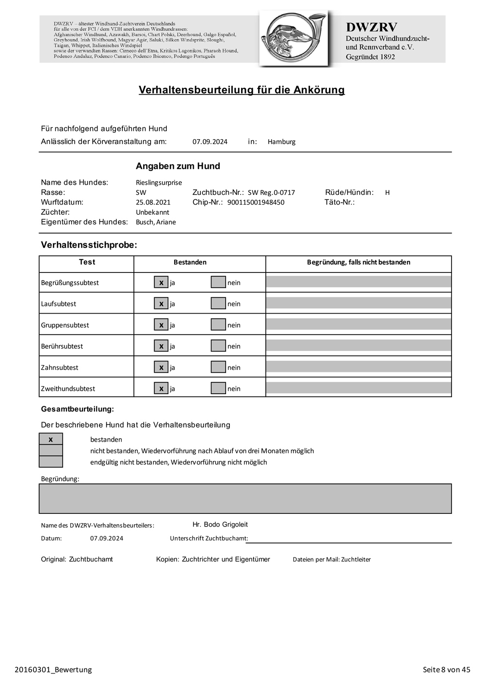 Viel schlimmer ist noch, dass der erste Whippet-Backcross bereits geboren ist. Ohne festgelegte Regeln für die weitere Verwendung der Tiere und ohne ein kompetentes begleitendes Team. Das wurde mal eben entlassen. Einen Hinweis zur Bildung von beratenden Komitees gibt es übrigens nicht in der Satzung des DWZRV – hier kann man lange nach Satzungskonformität suchen.